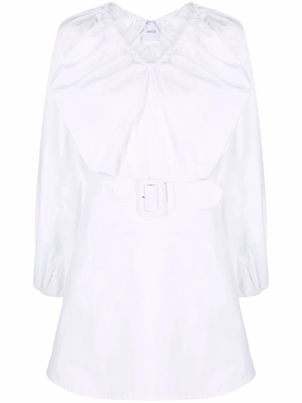 oversize-collar cotton dress Patou elevates the classic cotton dress with dramatic balloon sleeves. Showcasing a belted waist, the bright white garment is complete with an oversized collar for a classic finish. Imported Composition Cotton 100% SIZE & FIT Model measurements Height 5 ft 11 in(1.8 m) Bust/Chest 31.49 in(80 cm) Hips 35.82 in(91 cm) Waist 24.8 in(63 cm) FittingInformation This piece fits true to size. We recommend you get your regular size Cut for a loose fit. Comes with an adjustable belt for a flexible fit at the waist Made with a mid-weight non-stretch fabric Washing instructions Hand Wash