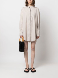 Painter shirt dress This shirt dress from Patou arrives in a light beige hue and is paired with embroidered logo detailing at the front for a branded finish. Imported Composition Cotton 82%, Polyamide 18% SIZE & FIT Model measurements Height 5 ft 11 in(1.8 m) Bust/Chest 31.49 in(80 cm) Hips 36.22 in(92 cm) Waist 25.59 in(65 cm) FittingInformation This piece fits true to size. We recommend you get your regular size Cut for a loose fit Made with a mid-weight non-stretch fabric Washing instructions Dry Clean Only