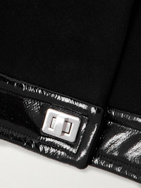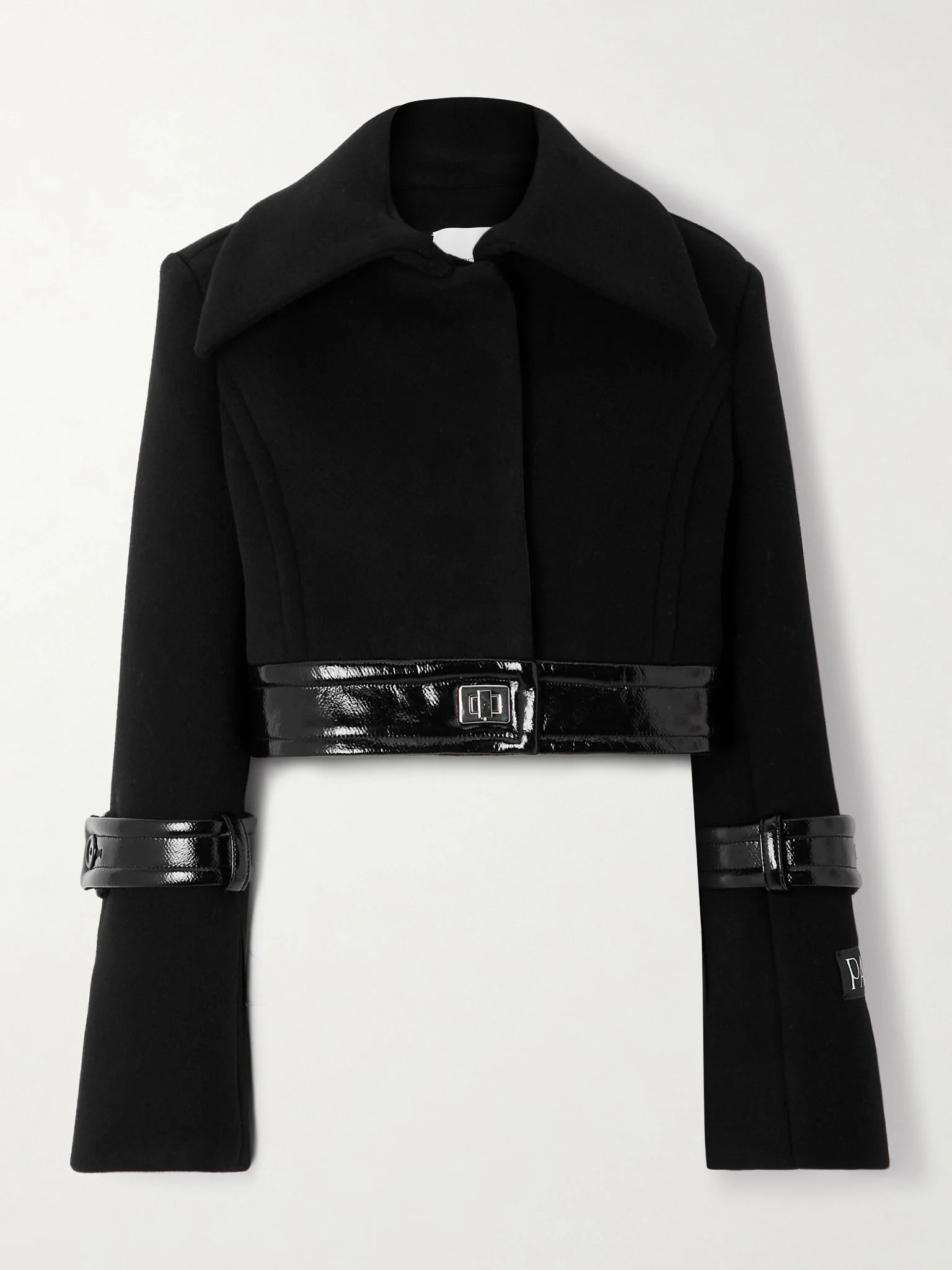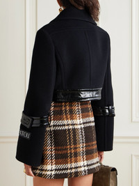 The twist-lock detail lends an unexpected edge to Patou's jacket. Made from a brushed wool-blend, it has glossy coated trims and a boxy, cropped shape. Wear yours as part of an all-black outfit. Size & Fit - Fits true to size, take your normal size - Designed for a boxy fit, cut to be worn loose - Weighted, non-stretchy fabric - Model is 177cm/ 5'10" and is wearing a FR 36 Model measurements: - Bust: 85cm/ 33.5” - Waist: 63cm/ 25” - Hip: 90cm/ 35.5” Details & Care - Black wool-blend and coated - Concealed button fastenings through front, twist-lock fastening at front - 72% wool, 25% polyamide, 3% cashmere; trim: 70% wool, 20% polyester, 10% polyamide; lining: 100% viscose - Fully lined - Dry clean
