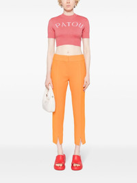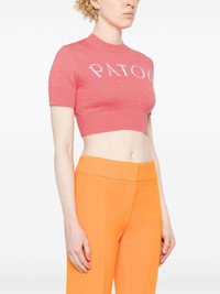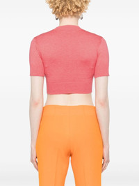 intarsia-knit top Highlights - Pink - Cotton-wool blend - Knitted construction - Melange effect - High neck - Intarsia-knit logo - Short sleeves - Ribbed cuffs and hem - Cropped Imported Composition Cotton 60%, Wool 40% SIZE & FIT Model measurements Height 5 ft 9 in(1.75 m) Bust/Chest 34.64 in(88 cm) Hips 36.61 in(93 cm) Waist 26.37 in(67 cm) FittingInformation Designed for a close fit throughout Cropped in length Made with a midweight knit, this piece offers some stretch This piece fits true to size – take your usual size