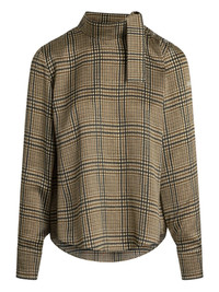 plaid-pattern scarf-detail blouse Highlights - Beige - Plaid pattern - Scarf detail - Long sleeves - High neck - Button cuffs Imported Composition Organic Silk 100%