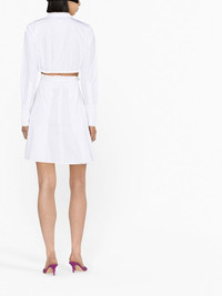 pleat-detail mini shirtdress Wide pleats provide a refined touch to this white shirtdress from Patou. The thigh-length piece is further elevated by a belted waist with a cut-out at the back. Highlights - White - Cotton - Poplin texture - Pleat detailing - Cut-out detailing - Spread collar - Front button placket - Long sleeves - Buttoned cuffs - Tied waist - Flared skirt - Concealed rear zip fastening - Thigh-length Made in Italy Composition Cotton 100% SIZE & FIT Model measurements Height 5 ft 10 in(1.78 m) Bust/Chest 29.92 in(76 cm) Hips 34.64 in(88 cm) Waist 23.62 in(60 cm) Measurement SLEEVE LENGTH 19.29 in(49 cm) HIPS 44.09 in(112 cm) LENGTH 38.18 in(97 cm) WAIST 29.13 in(74 cm) BUST 33.85 in(86 cm) Shoulder Width 15.74 in(40 cm) FittingInformation This piece fits true to size. We recommend you get your regular size Designed for a loose fit with a close fit at the waist Made with a mid-weight non-stretch fabric Washing instructions Machine Wash
