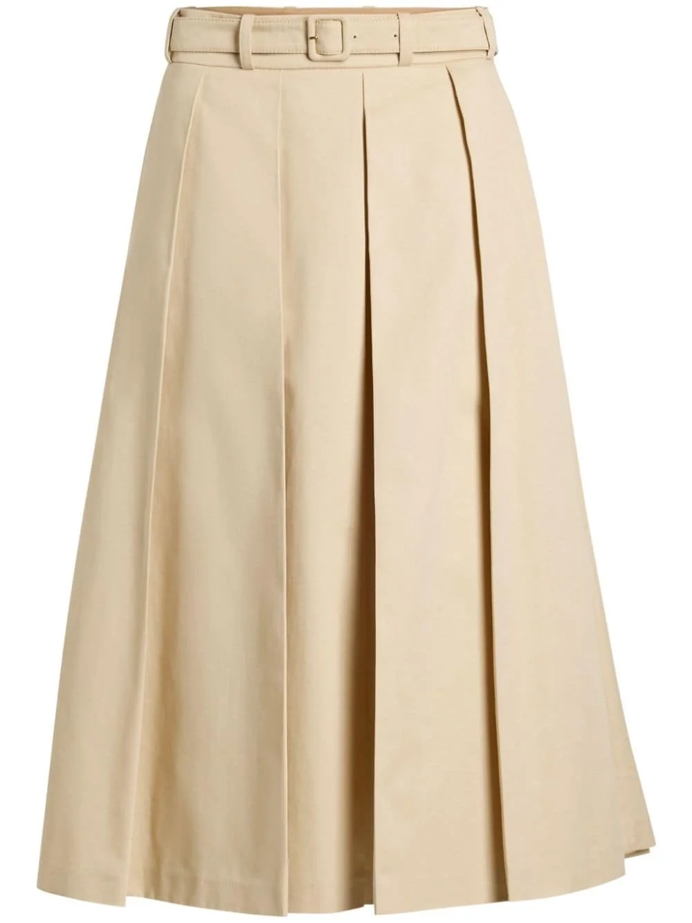 pleated midi skirt Highlights - Sand beige - Organic cotton - Fully pleated - Belt loops - Front buckle fastening - Two side slit pockets - Flared hem - Mid-length Imported Composition Organic Cotton 100% SIZE & FIT Measurement LENGTH 32.28 in(82 cm) WAIST 27.55 in(70 cm)