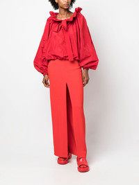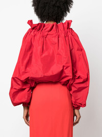 pussy-bow puffed top Characterized by its puffed silhouette, this Patou top is crafted from faille in a bright red colour. A pussy bow collar and long puffed sleeves complete the dramatic piece. Highlights - Bright red - Recycled polyester - Faille - Pussy-bow collar - Puffball design - High neck - Long puff sleeves - Elasticated waistband Imported Composition Outer: Recycled Polyester 100% SIZE & FIT Model measurements Height 5 ft 11 in(1.8 m) Bust/Chest 31.49 in(80 cm) Hips 35.82 in(91 cm) Waist 24.8 in(63 cm) Measurement CHEST 43.7 in(111 cm) HIPS 26.77 in(68 cm) LENGTH 22.44 in(57 cm) FittingInformation Designed to be unstructured, offering a loose fit throughout The elasticated waist allows for a comfortable fit Made from a midweight non-stretch fabric This piece fits true to size – take your usual size