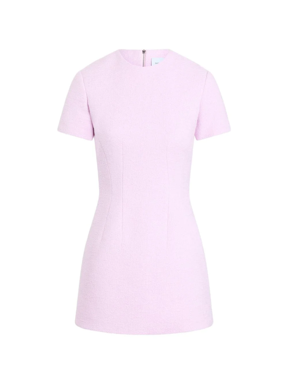 rear zip fastening mini dress Highlights - Purple - Short sleeves - Round neck - Rear zip fastening Imported Composition Outer: Cotton 98%, Polyamide 2% Lining: Viscose 100% Washing instructions Dry Clean Only