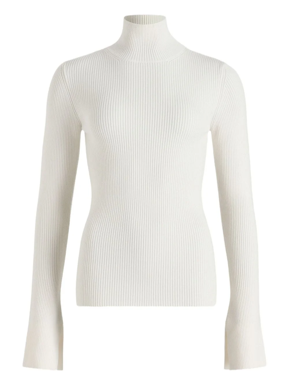 ribbed high-neck sweater Highlights - White - Ribbed texture - High neck - Long sleeves - Bell sleeves Imported Composition Merino 88%, Polyamide 11%, Elastane 1% Washing instructions Hand Wash