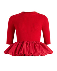RUFFLE HEM RIBBED JUMPER IN WOOL AND FAILLE