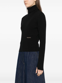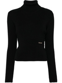 black merino wool blend ribbed knit logo patch to the front roll neck long sleeves ribbed slit cuffs ribbed hem straight hem We've partnered with Good On You — an independent agency that rates how brands perform in relation to their impact on the planet, people and animals, with a multi-criteria rating simplified to a five points scale. In order to be awarded our conscious label, larger brands need to score a minimum of four out of five ('Good'), while smaller brands must score at least three out of five ('It's A Start'). This item comes from a brand rated three out of five ('It's A Start') by Good on You at the time it was added on FARFETCH. Please note, this is a brand-level rating and does not guarantee that this product is made with conscious materials. Learn more about what makes a product Conscious on our Conscious Criteria page Size & Fit Model Measurements: Height: 1.77 m Bust/Chest: 73.0 cm Hips: 86.0 cm Waist: 59.0 cm Model wears size M Fabric and Care Designer Style ID: KN1848009999B Designer Colour: BLACK999B Composition: Polyamide 5%, Elastane 1%, Merino 94% Washing instructions: Hand Wash Made in Turkey