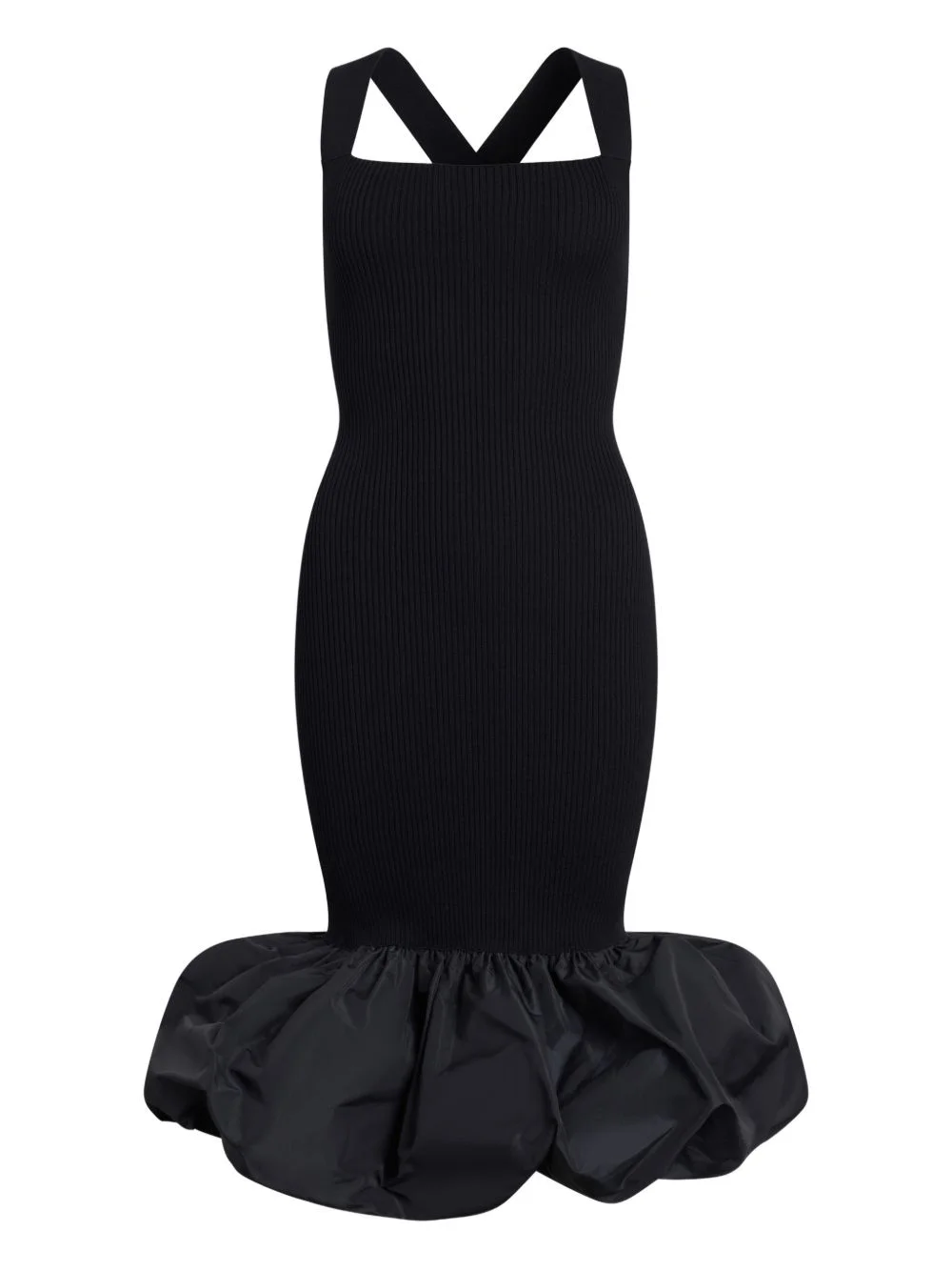 ruffled-hem midi dress Highlights - Black - Knitted - Criss-cross back straps - Square neck - Ruffled hem Imported Composition Cotton 86%, Polyamide 13%, Elastane 1% Washing instructions Hand Wash