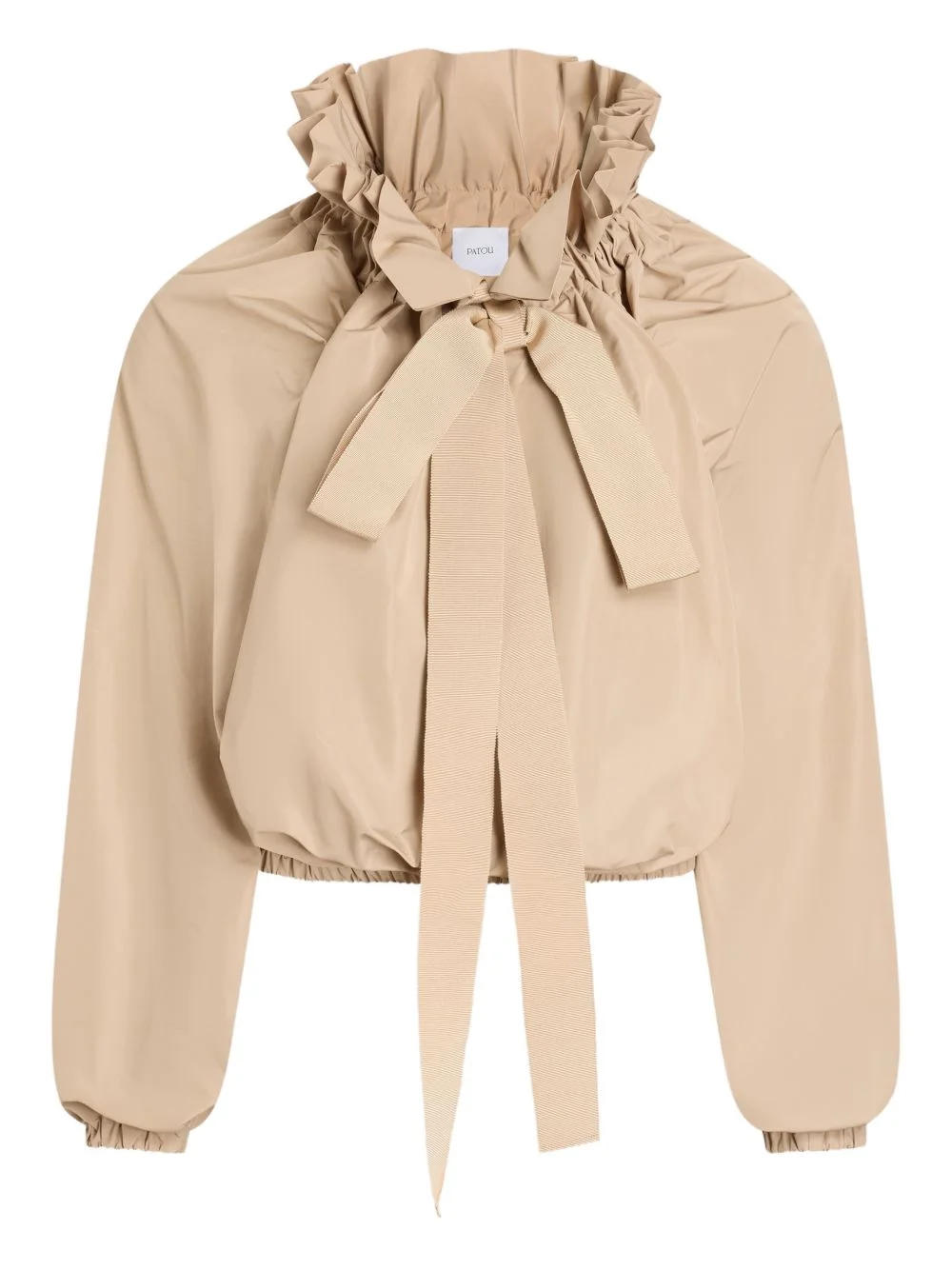 ruffled tie-neck top Highlights - Beige - Ruffled high neck - Tie detail - Long sleeves - Elasticated hem - Elasticated cuffs Imported Composition Polyester 100% Washing instructions Hand Wash