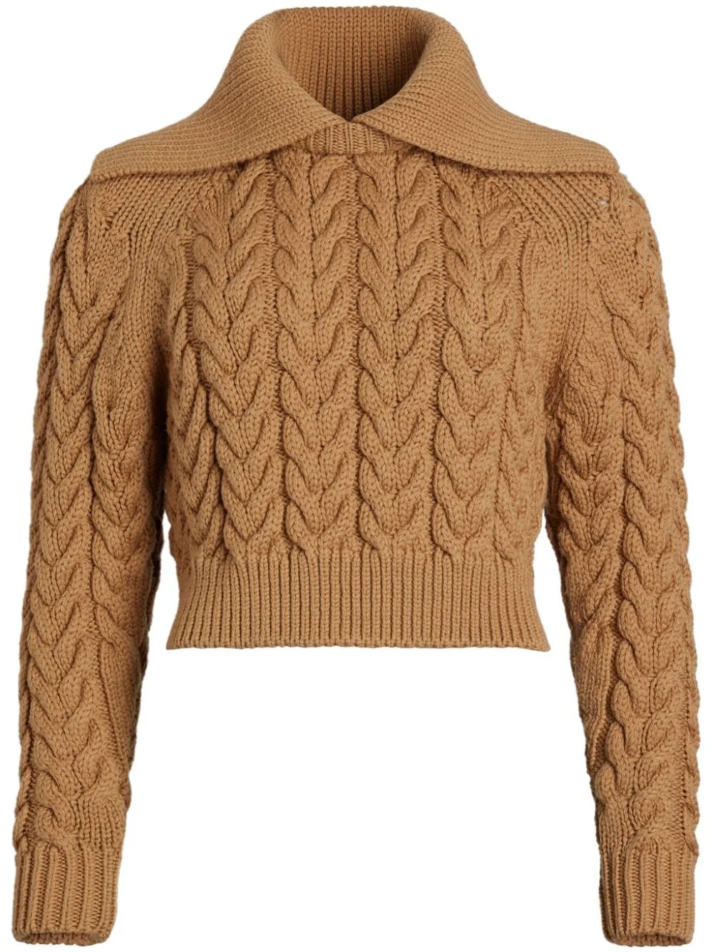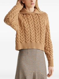sailor cable-knit sweater Highlights - Caramel brown - Wool - Cable knit - Sailor collar - Long sleeves - Ribbed trim - Straight hem - Cropped Imported Composition Wool 100%