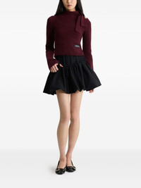 scarf-collar sweater Highlights - Burgundy - Ribbed knit - Scarf neck tie - Shoulder button detail - Cropped length - Long sleeves Imported Composition Outer: Merino 100% Trims: Recycled Polyester 100% Washing instructions Read Manufacturer Guidelines