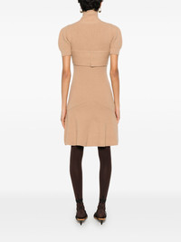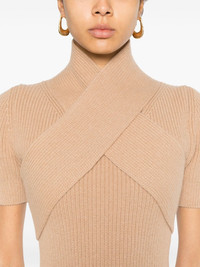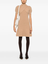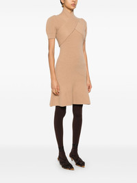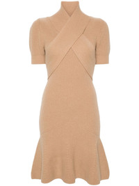 wrap-front mini dress Highlights - Camel brown - Merino-cashmere blend - Knitted construction - Stand-up collar - Criss-cross detailing - Short sleeves - Flared hem - Thigh-length Imported Composition Merino 90%, Cashmere 10% SIZE & FIT Model measurements Height 5 ft 9 in(1.76 m) Bust/Chest 31.88 in(81 cm) Hips 35.43 in(90 cm) Waist 24.8 in(63 cm) FittingInformation Designed for a slim fit that sits just away from the body offering a close yet comfortable fit Made with a midweight knit, this piece offers some stretch