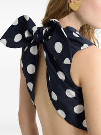 scarf faille top Highlights - Navy blue - Rear tie fastening - Open back - Crew neck - Cropped Imported Composition Recycled Polyester 100%