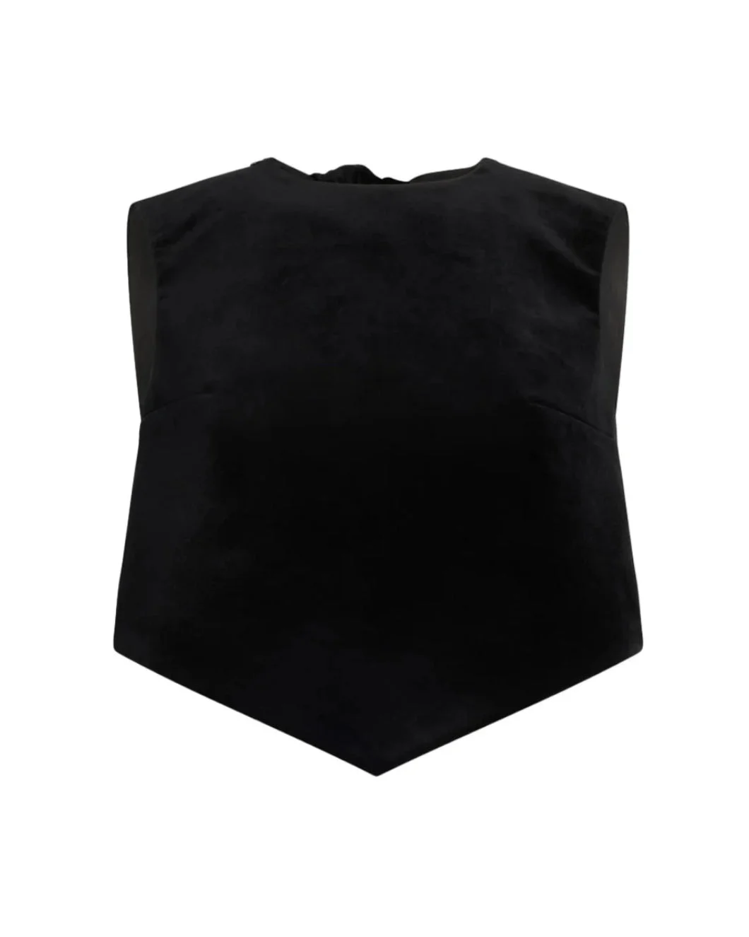 The Scarf Top in Black Cotton Velvet by Patou is a open back top featuring a tie and v-front silhouette.