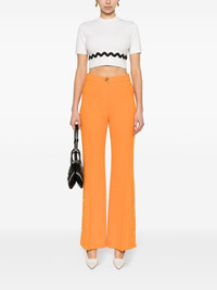 button-hem flared wool trousers Highlights - Pumpkin orange - Virgin wool - Textured finish - High waist - Faux pocket detail to the sides - Pressed crease - Side-bottom button fastening - Flared - Gold-tone logo-debossed buttons - Concealed fly and button fastening Imported Composition Virgin Wool 100% SIZE & FIT Model measurements Height 5 ft 11 in(1.8 m) Bust/Chest 33.07 in(84 cm) Hips 37 in(94 cm) Waist 25.59 in(65 cm) FittingInformation Designed with a flared hem, these trousers allow for a close fit at the waist with a slim fit over the leg and widening towards the hem Made from a midweight non-stretch fabric This piece fits true to size – take your usual size Washing instructions Dry Clean Only