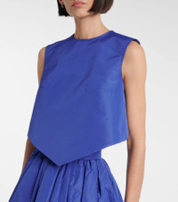 The Slees top from Patou is emblematic of the brand's love of joyful and refined designs with its cropped length and split back with knot fastening. Crafted from faille, it creates a subtle sheen that enhances its elegant silhouette. Product Details - Material: 100% polyester - Care instructions: hand wash - Made in Poland - Designer color name: Orchid Blue - Item color: blue - Item number: P01054444 Size & Fit - True to size - Low back - Designed for a loose fit - Non-stretchy fabric - Cropped - The model seen in the picture is 178cm-5'10" and wearing a size FR 36