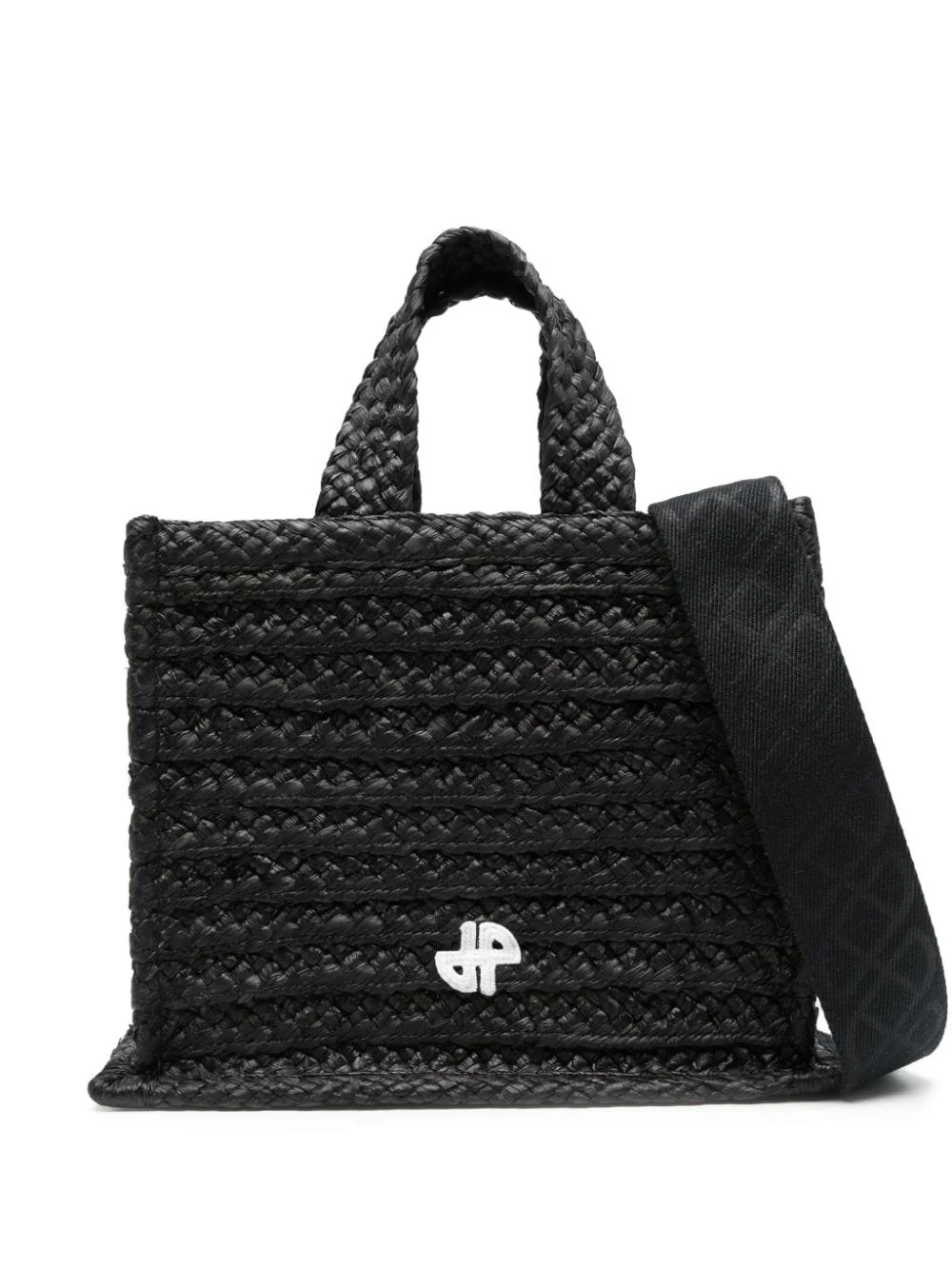 small JP raffia tote bag Highlights - Black - Raffia - Woven raffia design - Logo patch to the front - Logo patch to the rear - Internal logo patch - Logo-engraved gold-tone hardware - Open top - Braided top handles - Detachable logo-jacquard shoulder strap - Main compartment - Unlined - This piece comes complete with a protective dust bag. Imported Composition Outer: Polyester 100%, Raffia 100% SIZE & FIT Model measurements Height 5 ft 11 in(1.8 m) Bust/Chest 30.7 in(78 cm) Hips 35.03 in(89 cm) Waist 24.4 in(62 cm) Measurement DEPTH 5.11 in(13 cm) HANDLE 3.93 in(10 cm) HEIGHT 8.66 in(22 cm) STRAP 38.58 in(98 cm) WIDTH 11.02 in(28 cm)