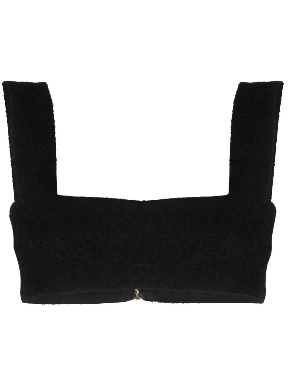 square-neck tweed crop top Founded in Paris in 1914, Patou references a quintessentially French spirit through its refined styles. Suspended by thick straps, this crop top is crafted from tweed to a minimalist square-neck silhouette. Imported Composition Cotton 34%, Viscose 21%, Linen/Flax 20%, Polyamide 15%, Polyester 8%, Elastane 2% SIZE & FIT Model measurements Height 5 ft 10 in(1.77 m) Bust/Chest 32.67 in(83 cm) Hips 35.43 in(90 cm) Waist 23.62 in(60 cm) FittingInformation This piece fits true to size. We recommend you get your regular size Cut for a slim fit Made with a mid-weight fabric Washing instructions Dry Clean Only