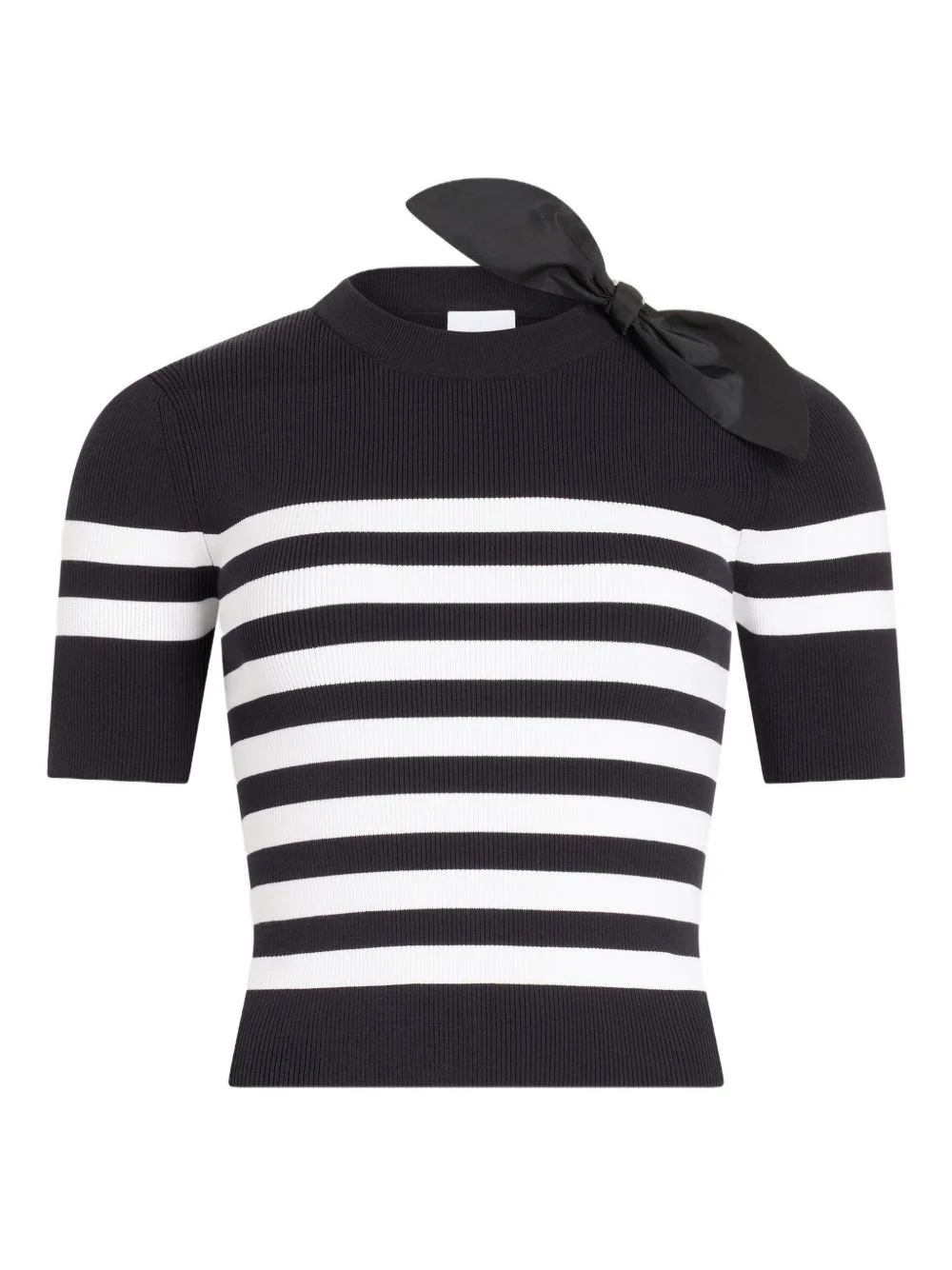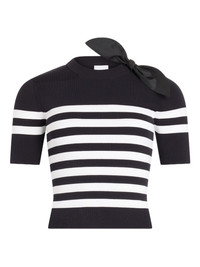 striped bow-detail knitted T-shirt Highlights - Black - Striped design - Bow detail - Short-sleeved - Knitted construction - Crew neck Imported Composition Cotton 100% Washing instructions Hand Wash