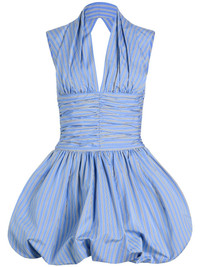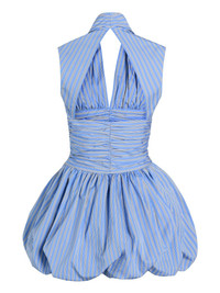 striped bubble-hem mini dress Highlights - Sky blue - Plunging v-neck - Sleeveless - Open back - Pleat detailing Imported Composition Organic Cotton 100% SIZE & FIT Measurement HIPS 41.73 in(106 cm) LENGTH 35.43 in(90 cm) WAIST 32.28 in(82 cm)