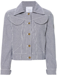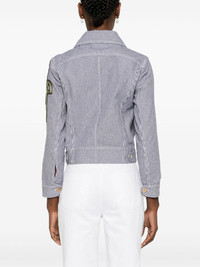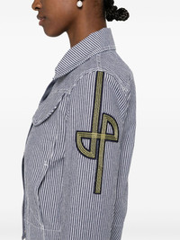striped cropped denim jacket Highlights - Navy blue/white - Cotton - Denim - Vertical stripe pattern - Spread collar - Two chest flap pockets - Long sleeves with buttoned cuffs - Jp logo patch at the sleeve - Logo-debossed gold-tone buttons - Two side inset pockets - Cropped - Waist tabs - Authenticity qr code - Front button fastening Imported Composition Cotton 100%, Polyester 100% SIZE & FIT Model measurements Height 5 ft 10 in(1.77 m) Bust/Chest 29.92 in(76 cm) Hips 34.25 in(87 cm) Waist 23.62 in(60 cm) FittingInformation Designed for a slim fit that sits just away from the body offering a close yet comfortable fit Sturdy and hard-wearing, this denim piece offers no stretch This piece fits true to size – take your usual size