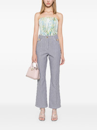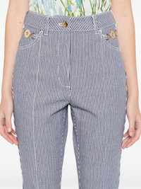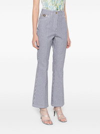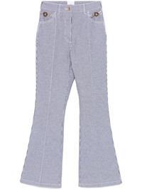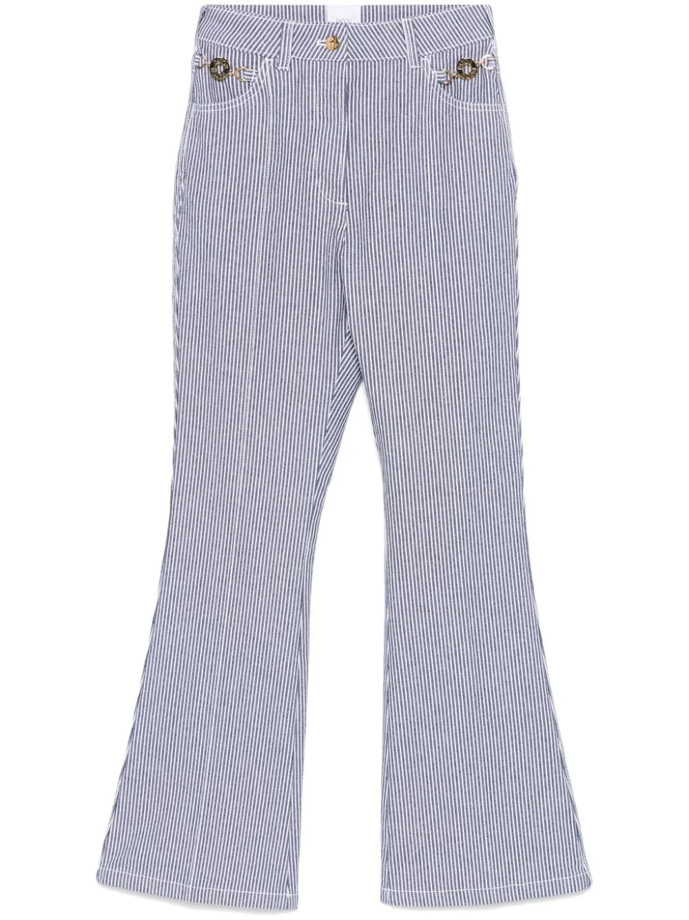 striped flared trousers Highlights - Cobalt blue/white - Cotton - Concealed front button fastening - Vertical stripe pattern - Belt loops - Logo plaque - Two side slit pockets - Embroidered logo to the rear - Flared Imported Composition zamac 100%, Cotton 100% SIZE & FIT Model measurements Height 5 ft 9 in(1.75 m) Bust/Chest 31.88 in(81 cm) Hips 34.64 in(88 cm) Waist 24.01 in(61 cm) FittingInformation Designed with a flared hem, these trousers allow for a close fit at the waist with a slim fit over the leg and widening towards the hem Made from a midweight non-stretch fabric