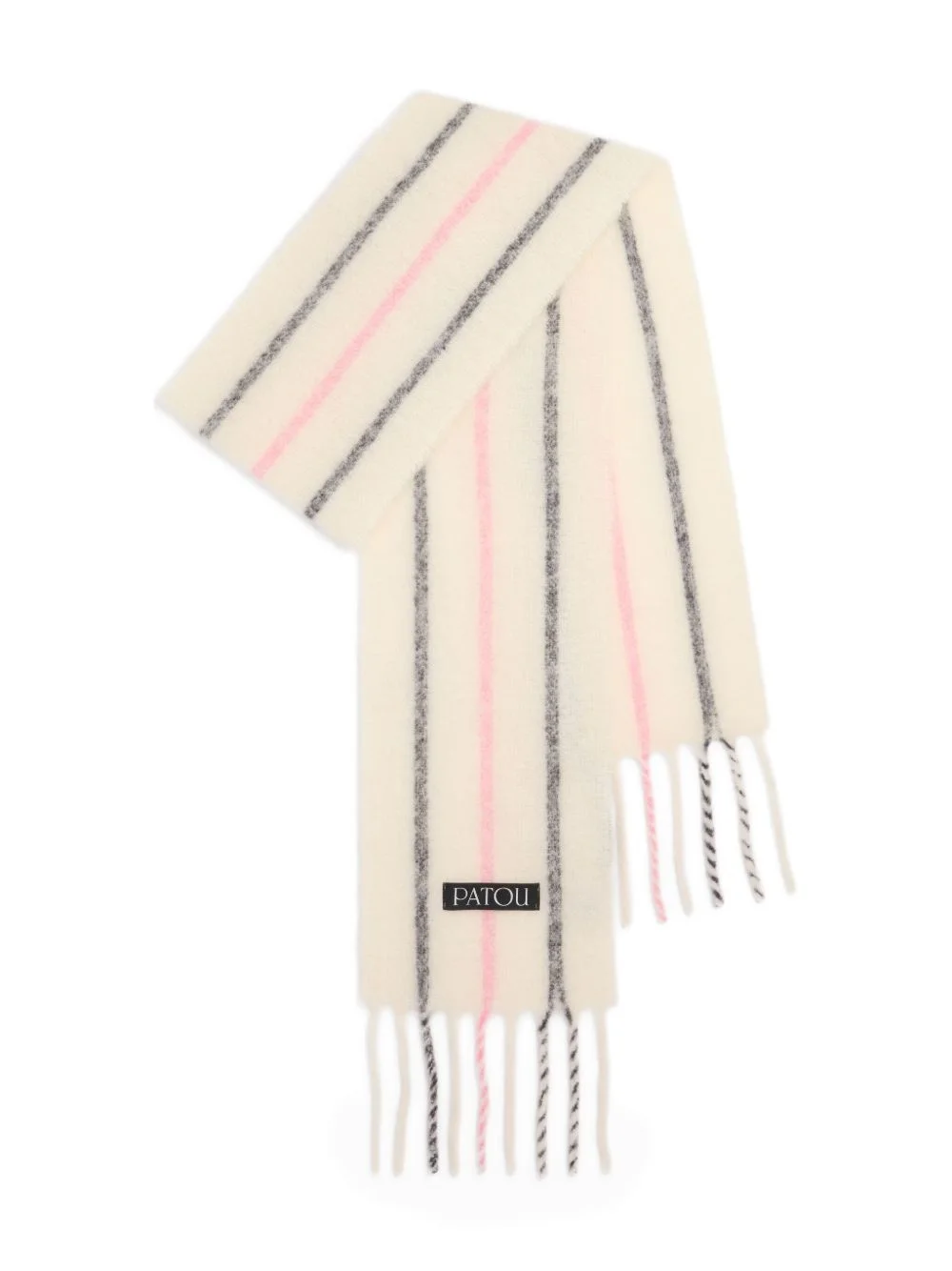 striped fringed scarf Highlights - Cream - Vertical stripes - Logo patch - Fringed edge Made in Italy Composition Alpaca Wool 80%, Polyamide 20%