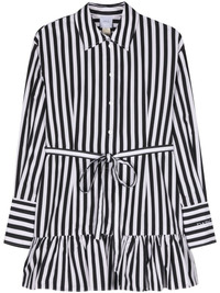 striped mini shirt dress Highlights - Black/white - Cotton - Poplin texture - Classic collar - Drop shoulder - Long sleeves - Buttoned cuffs - Detachable and adjustable waist belt - Ruffle hem - Thigh-length - Short front button fastening - Self-tie fastening Imported Composition Cotton 100%