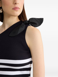 striped-pattern bow-detail one shoulder top Highlights - Blue - Striped - One shoulder - Bow detail - Ribbed texture Imported Composition Cotton 72%, Polyamide 24%, Elastane 4% Washing instructions Hand Wash