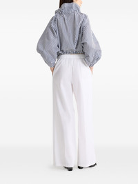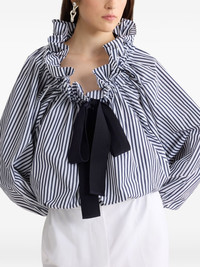 striped ruffled-neck bow-tie blouse