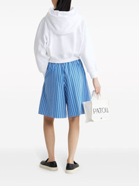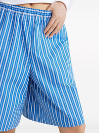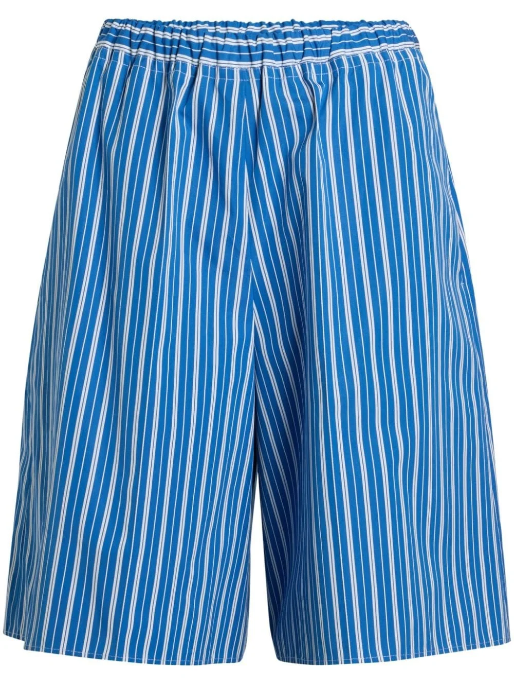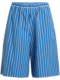 striped longline shorts Highlights - White/sky blue - Cotton - Vertical stripe pattern - High-waisted - Elasticated waistband - Wide leg - Two side slit pockets - Knee-length Imported Composition BCI Cotton 100%