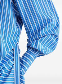 striped mini shirt dress Highlights - Blue/white - Wool - Vertical stripe pattern - Embroidered logo to the front - Classic collar - Front button fastening - Detachable waist belt - Epaulettes - Long sleeves - Buttoned cuffs - Thigh-length - Curved hem Imported Composition Lining: Viscose Crepe 100% Outer: Recycled Wool 100%