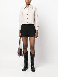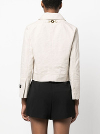 tailored short jacket Patou's affinity for elevated simplicity is captured in the clean lines of this beige-hued cotton jacket. Characterised by a cropped silhouette, it's decorated at the rear with a logo-engraved medallion charm that nods to the label's eccentric spirit. Imported Composition Cotton 100% SIZE & FIT Model measurements Height 5 ft 11 in(1.8 m) Bust/Chest 31.49 in(80 cm) Hips 36.61 in(93 cm) Waist 24.4 in(62 cm) Washing instructions Dry Clean Only