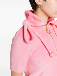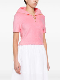 half-zip terrycloth polo shirt Highlights - Bubblegum pink - Cotton - Terry-cloth effect - Drawstring hood - Short sleeves - Half front zip fastening - Embroidered logo to the front - Straight hem Imported Composition Cotton 100% SIZE & FIT Model measurements Height 5 ft 11 in(1.8 m) Bust/Chest 33.07 in(84 cm) Hips 37 in(94 cm) Waist 25.59 in(65 cm) FittingInformation Designed for a slim fit that sits just away from the body offering a close yet comfortable fit Made from a lightweight non-stretch fabric, this piece offers minimal elasticity when worn This piece fits true to size – take your usual size Washing instructions Machine Wash