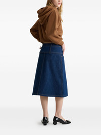 zip-front belted denim skirt