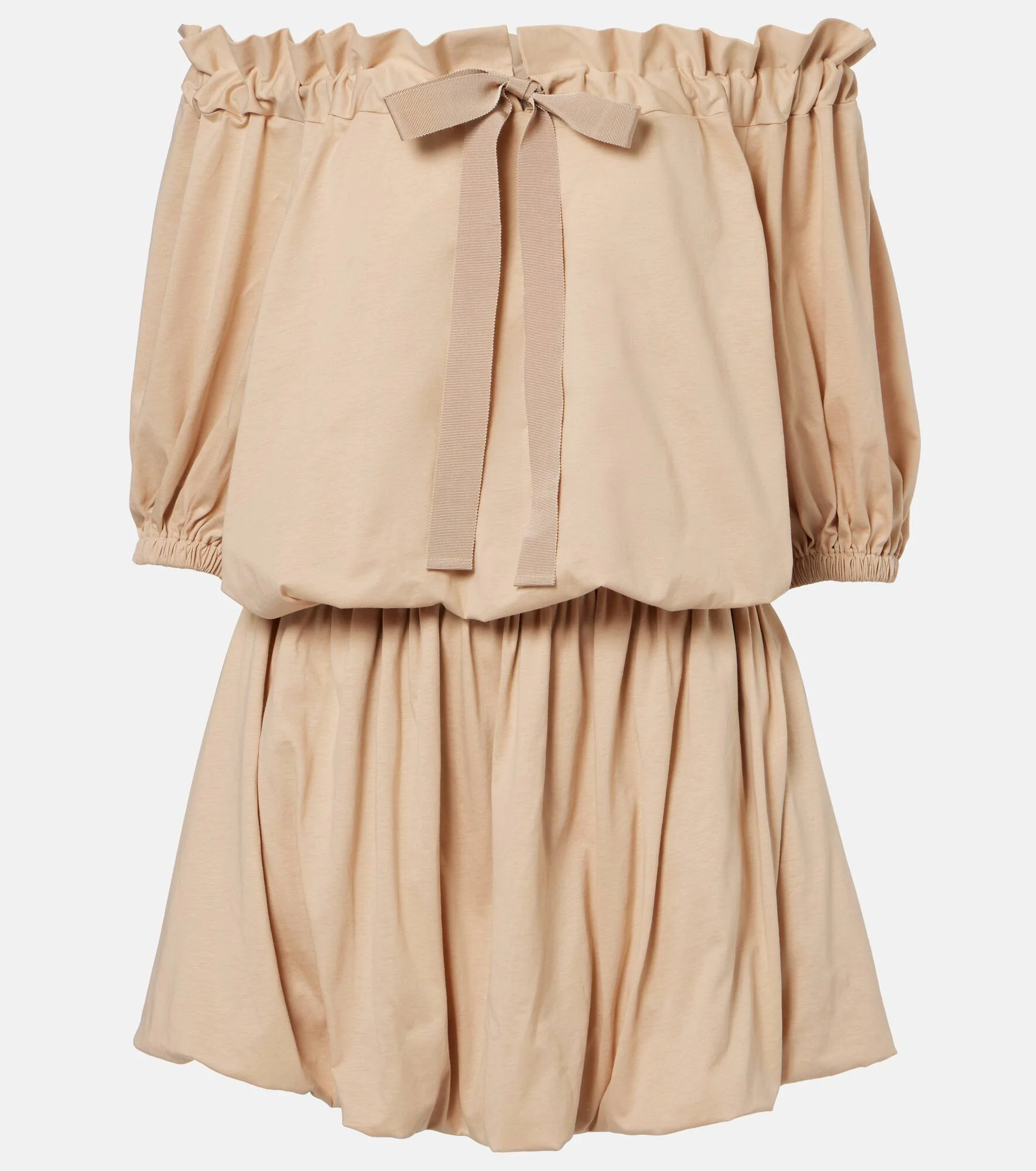 Patou continues to define Parisian style with joyful and refined designs. This minidress is crafted from cotton faille, defined by a balloon silhouette and a gathered neckline complemented by front tie straps. Product Details - Material: 100% cotton - Care instructions: machine wash at 30 degrees - Made in Portugal - Color: beige - Designer color name: Sand - Trim: 55% cotton, 45% viscose - Item number: P01143014 Size & Fit - True to size - Loose fit, elasticated waist - Non-stretchy fabric - The model seen in the picture is 178cm-5'10" and wearing a size XS