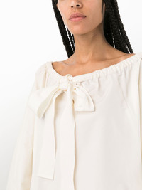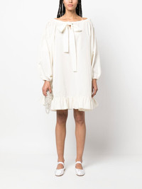 tie-neck ruffled minidress Patou enhances this dress with a ruched elasticated neckline with a grosgrain drawstring that can be worn off the shoulders. . The voluminous silhouette is enhanced by long balloon sleeves and a double ruffled hem. Imported Composition Polyester 100% SIZE & FIT Model measurements Height 5 ft 10 in(1.78 m) Bust/Chest 33.07 in(84 cm) Hips 36.61 in(93 cm) Waist 24.8 in(63 cm) FittingInformation This piece fits true to size. We recommend you get your regular size Cut for a loose fit Made with a mid-weight non-stretch fabric Washing instructions Hand Wash