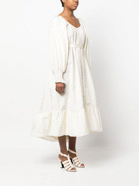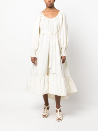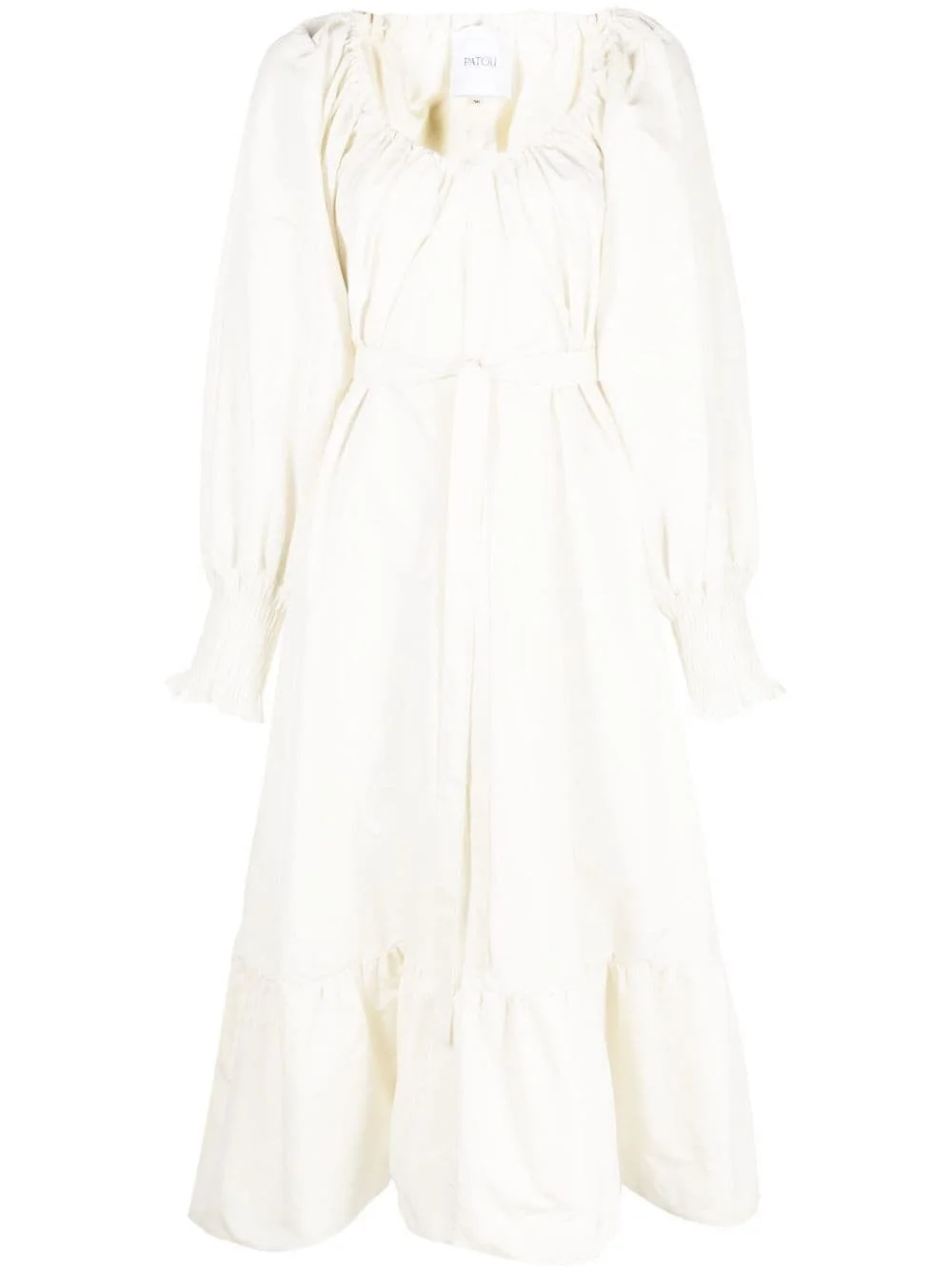tiered maxi dress Patou merges its eccentric spirit with high volume in this ivory-hued maxi dress. Characterised by its tiered construction and voluminous asymmetric silhouette, it's finished with long puff sleeves that emphasise the dramatic mood. Imported Composition Polyester 100% SIZE & FIT Model measurements Height 5 ft 10 in(1.79 m) Bust/Chest 33.07 in(84 cm) Hips 35.03 in(89 cm) Waist 24.4 in(62 cm) Washing instructions Hand Wash