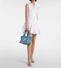 Founded by a French fashion visionary, Patou continues to define Parisian style with joyful and refined designs. Meticulously crafted from raffia, the Trapeze Small shopper is primed for effortless summer ensembles. The style is completed with two top handles and tonal logo embroidery. Product Details - Material: raffia - Lining: unlined - Handmade in Madagascar - Designer color name: Blue - Item color: blue - Internal details: single compartment - Top handles - Item number: P01025785 Size & Fit - Height 19cm-7.5" - Max. width 35,5cm-14" - Max. depth 15cm-6" - Length of handles 41cm-16"