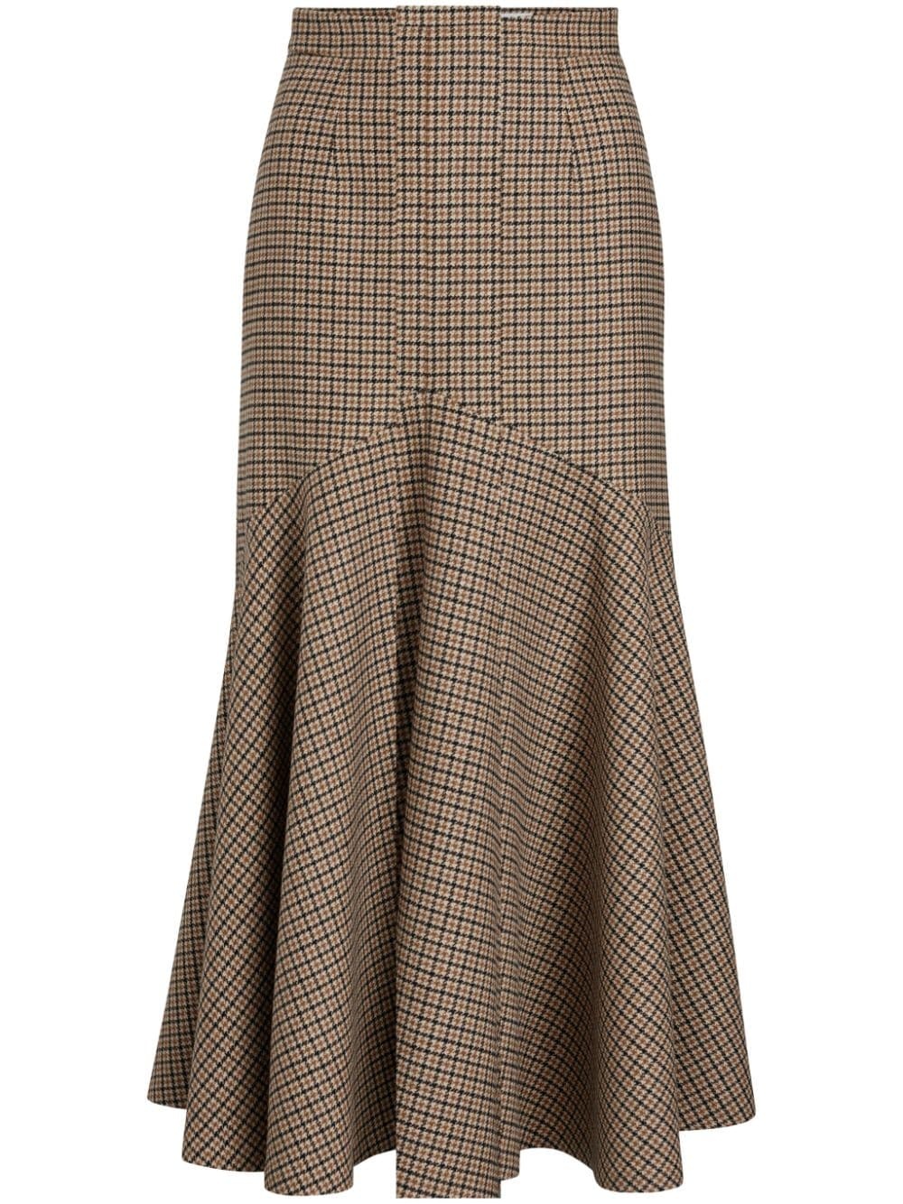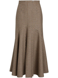 trumpet midi skirt Highlights - Brown - Cotton - Fine check pattern - High-waisted - Rear zip fastening - Trumpet silhouette - Fluted skirt - Straight hem - Mid-length - We've partnered with good on you — an independent agency that rates how brands perform in relation to their impact on the planet, people and animals, with a multi-criteria rating simplified to a five points scale. in order to be awarded our conscious label, larger brands need to score a minimum of four out of five ('good'), while smaller brands must score at least three out of five ('it's a start'). - This item comes from a brand rated three out of five ('it's a start') by good on you at the time it was added on farfetch. please note, this is a brand-level rating and does not guarantee that this product is made with conscious materials. - Learn more about what makes a product conscious on our conscious criteria page Imported Composition Cotton 100%