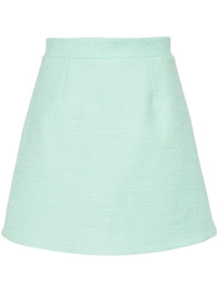tweed mini skirt Highlights - Light green - Cotton blend - Tweed - Concealed rear zip fastening - High-waisted - Dart detailing - Straight hem - Full lining Imported Composition Cotton 97%, Polyamide 2%, Elastane 1% SIZE & FIT Model measurements Height 5 ft 9 in(1.76 m) Bust/Chest 31.88 in(81 cm) Hips 35.43 in(90 cm) Waist 24.8 in(63 cm) FittingInformation This mini-length skirt is intended to be worn high on the waist Made from a midweight fabric This piece fits true to size – take your usual size