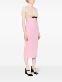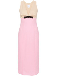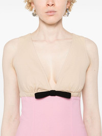 two-tone midi dress Highlights - Taupe/blush pink - Seersucker texture - Two-tone design - V-neck - Sleeveless - Ruched detailing - Bow detailing - Seam detailing - Straight hem - Unlined - Concealed side zip fastening Imported Composition Viscose 59%, Cotton 40%, Elastane 1% SIZE & FIT Model measurements Height 5 ft 9 in(1.75 m) Bust/Chest 34.64 in(88 cm) Hips 36.61 in(93 cm) Waist 26.37 in(67 cm) FittingInformation Designed for a close fit throughout Made from a midweight stretch fabric, this piece offers elasticity and flexibility when worn This piece fits true to size – take your usual size