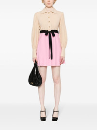 two-tone mini dress Highlights - Taupe/blush pink - Seersucker texture - Cutaway collar - Long sleeves - Buttoned cuffs - Drawstring waist - Flared hem - Partial lining - Front button fastening Imported Composition Viscose 59%, Cotton 40%, Elastane 1% SIZE & FIT Model measurements Height 5 ft 9 in(1.75 m) Bust/Chest 34.64 in(88 cm) Hips 36.61 in(93 cm) Waist 26.37 in(67 cm) FittingInformation Designed for a slim fit that sits just away from the body offering a close yet comfortable fit The adjustable drawstring means that you can adjust this piece’s fit to suit your comfort and preference Made from a midweight stretch fabric, this piece offers elasticity and flexibility when worn This piece fits true to size – take your usual size