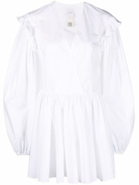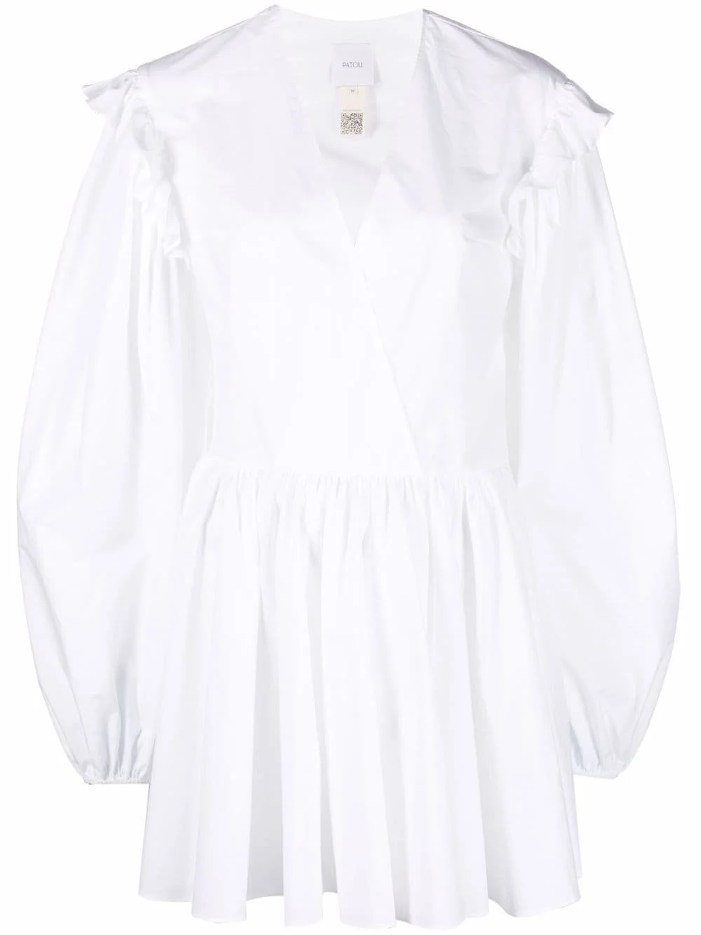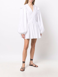 V-neck cotton dress white cotton wrap design ruffled detailing pleat detailing V-neck long sleeves flared skirt Imported Composition Cotton 100% SIZE & FIT Model measurements Height 5 ft 11 in(1.8 m) Bust/Chest 31.1 in(79 cm) Hips 34.25 in(87 cm) Waist 22.83 in(58 cm) FittingInformation This piece fits true to size. We recommend you get your regular size Designed for a close fit at the bust and waist, but loose at the hip Made with a mid-weight non-stretch fabric Washing instructions Hand Wash