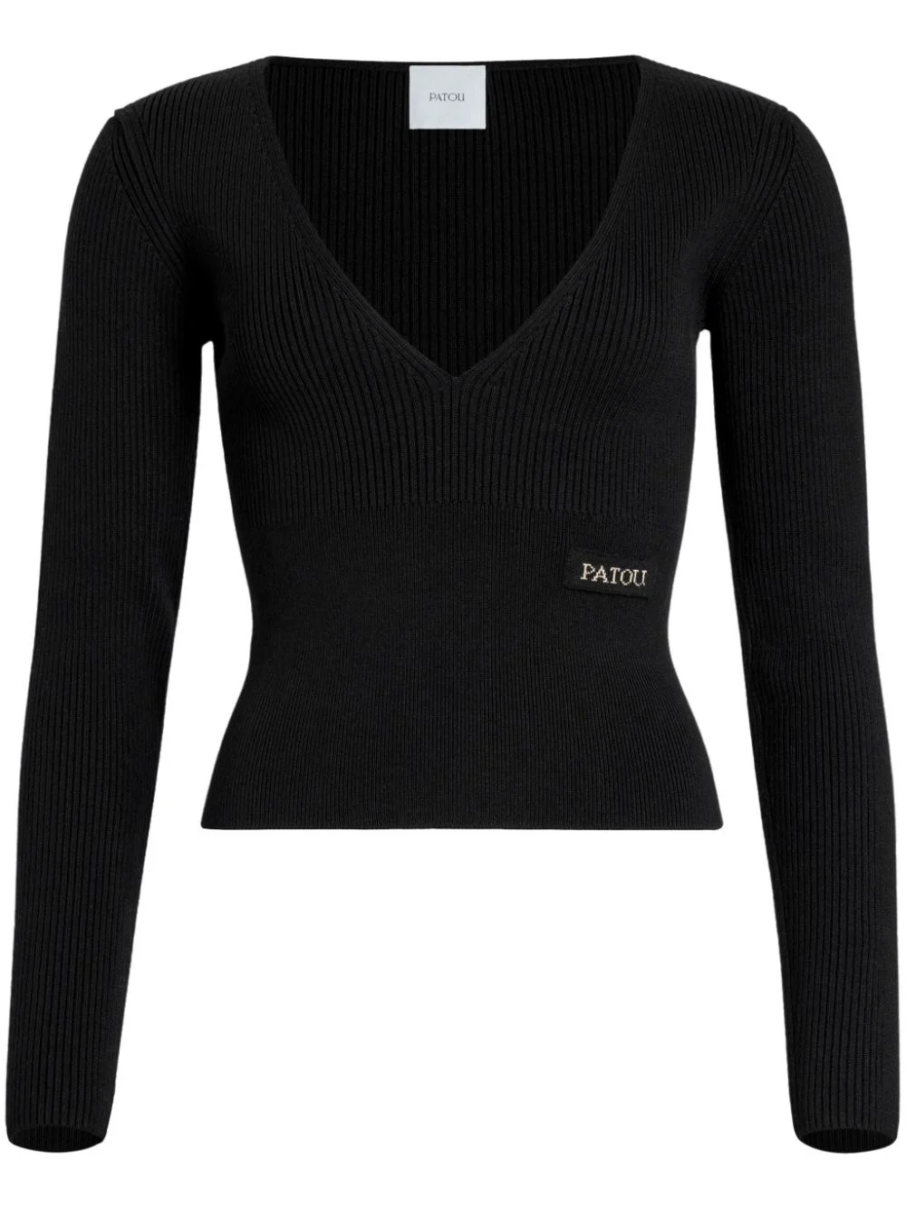 V-neck ribbed sweater Highlights - Black - Wool - Ribbed knit - Applique logo - V-neck - Long sleeves - Straight hem - Cropped Imported Composition Wool 100%