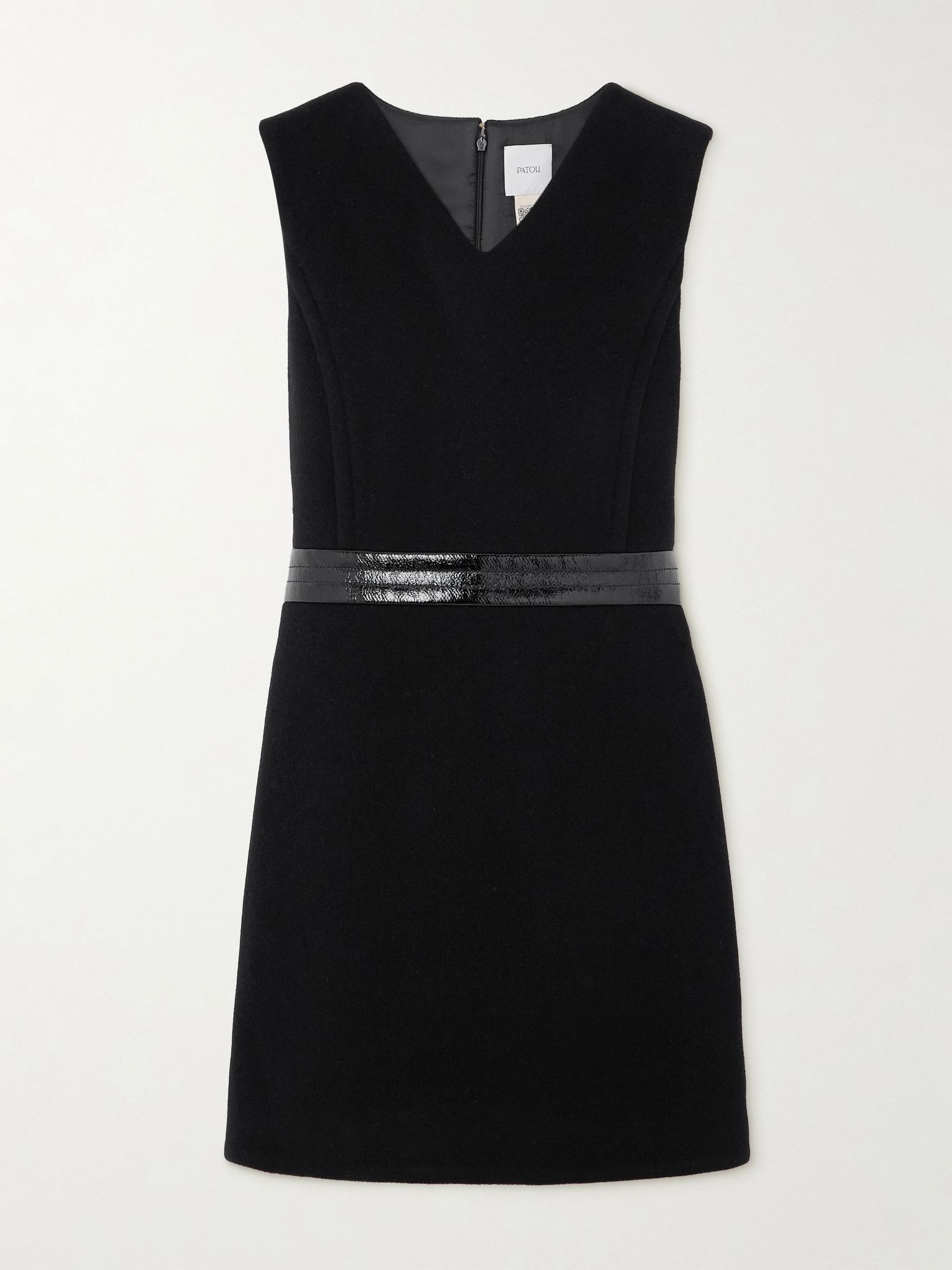 Patou's mini dress is cut in a shift silhouette that's reminiscent of '60s mod styles. It's made from warming wool-blend with a V-neckline and has a paneled waist trimmed with glossy crinkled vinyl. Wear yours with knee boots to lean into the retro feel. Size & Fit - Fits true to size, take your normal size - Designed for a slim fit - Mid-weight, non-stretchy fabric - Model is 177cm/ 5'10" and is wearing a FR 36 Model measurements: - Bust: 80cm/ 31.5" - Waist: 60cm/ 23.5" - Hip: 89cm/ 35" Details & Care - Black wool-blend and vinyl - Concealed zip fastening along back - 72% wool, 25% polyamide, 3% cashmere - Dry clean