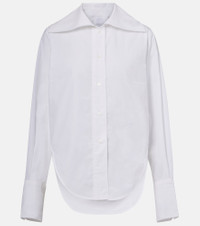 Patou continues to define Parisian style with joyful and refined designs. The Violin cotton poplin shirt features a fitted silhouette with an asymmetric front to back hem, completed with a wide pointed collar and button front fastening for effortless sophistication. Product Details - Material: 100% cotton - Care instructions: machine wash at 30 degrees - Made in Madagascar - Designer color name: White - Item color: white - Item number: P01054442 Size & Fit - True to size - Designed for a loose fit - Non-stretchy fabric - Falls below the hip - The model seen in the picture is 178cm-5'10" and wearing a size FR 36