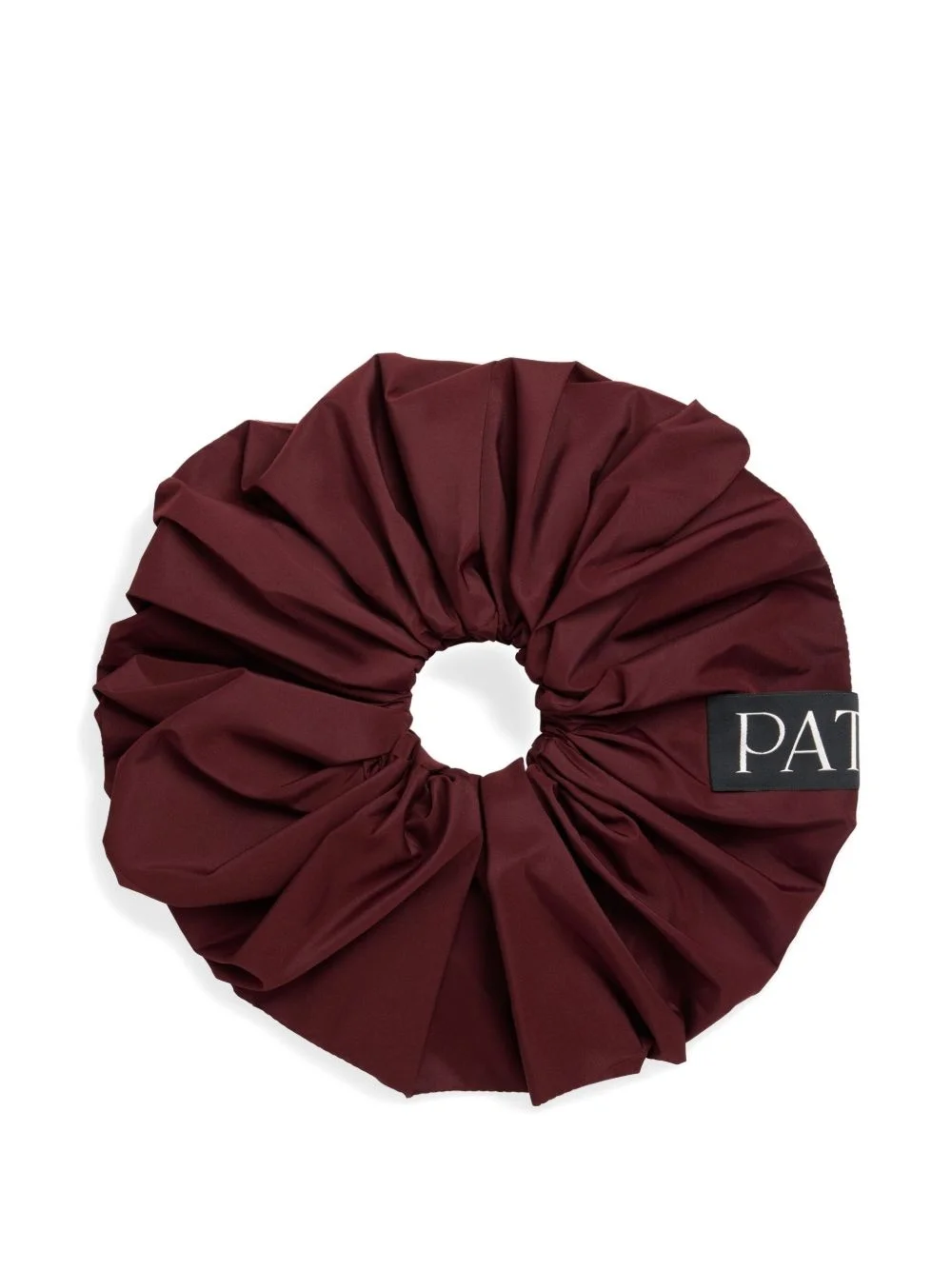 Volume faille scrunchie Highlights - Burgundy - Pleated texture - Logo label Imported Composition Recycled Polyester 100%