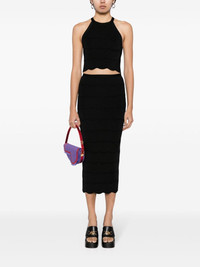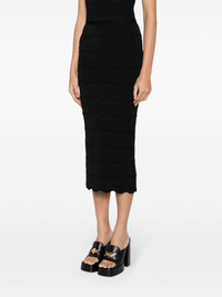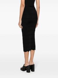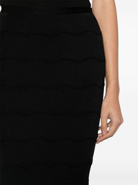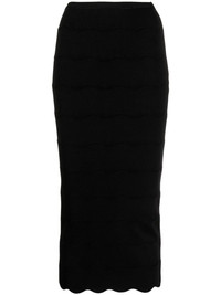 Wave Milano-knit pencil skirt Highlights - Black - Stretch-design - Wave detailing - High-waisted - Below-knee length - Scallop hem Imported Composition Outer: Viscose 82%, Polyamide 16% Elastane 2% SIZE & FIT Model measurements Height 5 ft 10 in(1.77 m) Bust/Chest 31.49 in(80 cm) Hips 35.43 in(90 cm) Waist 25.19 in(64 cm) FittingInformation This midi-length skirt is intended to be worn high on the waist Made from a midweight stretch fabric, this piece offers elasticity and flexibility when worn This piece fits true to size – take your usual size